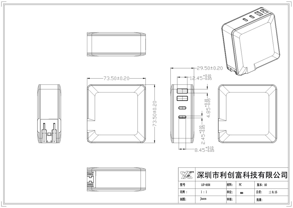 描述:PD100W轉換頭外殼、 采用PC塑料材質做的,符合ROHS環保標準,性能好,耐高溫,尺寸:74x74x30mm 規格:英規、澳規、歐規、泰規、印度規廣泛應用于多種類型的充電器外殼。
